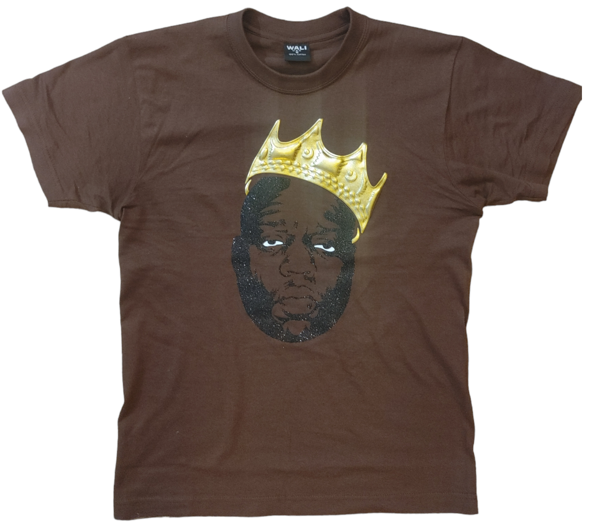 Brown Short Sleeve t-shirt with black glitter Biggie Smalls and Gold Crown